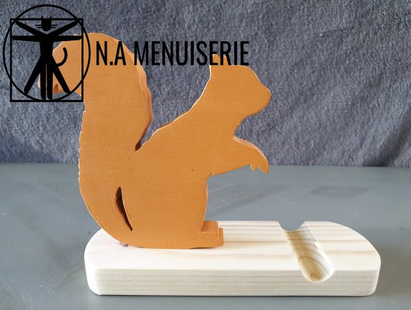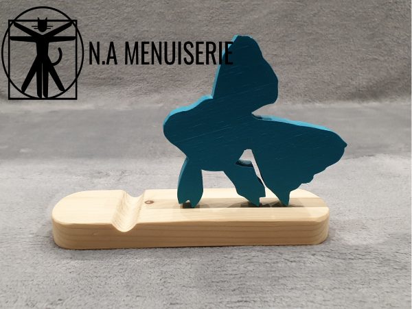 Nos supports téléphone vendus avec finition, sont huilés incolore pour le socle et peint pour la silhouette.